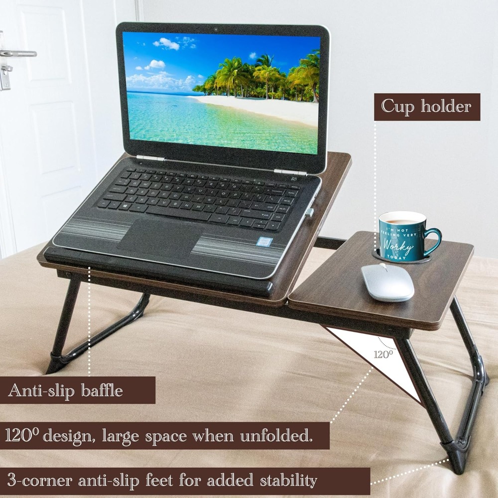 Laptop Desk, Laptop Bed Table with Foldable Legs & Cup Slot, Reading Holder Notebook Stand Breakfast Bed Tray Book Holder for Sofa, Bed, Terrace, Balcony