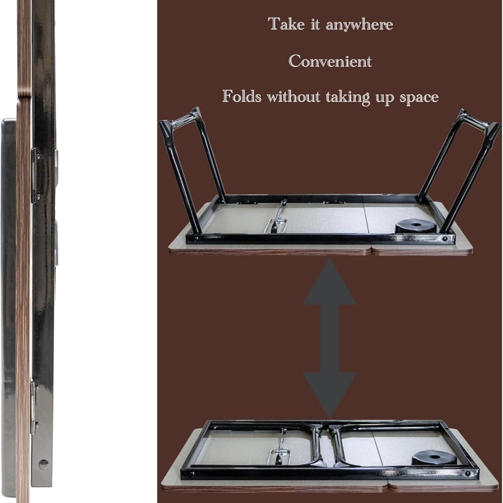1)Space saving! Folded Size: 32D x 64L x 25H cm. Easy to fold out, you could put it behind the door or the corner of home when not in use. 2)No need to leave the bed! Are you an avid lover of comfy bed? Or you're recovering from a surgery,what you need is this! It perfectly fits a small size laptop,or tablet & phone, also read or do arts and crafts while sitting on the sofa or having breakfast in bed. 3)High-quality materials: The desktop is made of MDF, solid wood particle board, safe and environmentally friendly. The legs are made of aluminum alloy tube. The surface is smooth, non-toxic, not easy to stretch, moisture-proof, scratch-resistant, high-temperature resistant materials are real, thick and reasonable in structure. 4)Scientific design: Curved desktop edge, curved tabletop, ergonomic design, protective layer around the desktop, so you can feel comfortable when using. The desktop card slot and cup slot design makes it easy and convenient to put mobile phones, iPads, books, water and beverages on. The anti-slip and W-legs are stable and the legs are folded to save space and flexibility. 5)Application: Mainly used for laptop bed frames, children's bedside tables, study table for kids foldable, mini writing desks, desks, laptop sofa tables or book/tablet tables. Family, sofa, small table, dormitory, desk, etc. It is also a gift for children.